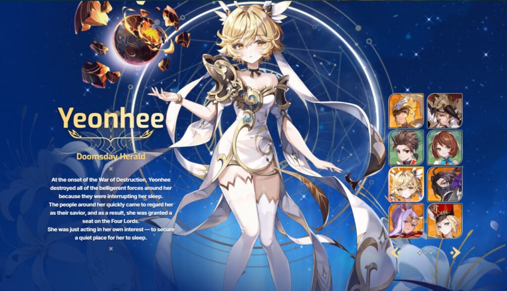 Heroes / Kelas / RarityHero dikelompokkan ke kelas seperti Damage Dealer (fisik / magis), Guardian (defense / HP tinggi), Support / Healer, dan hero “omniscient” yang fleksibel. Ada sistem peningkatan (upgrade, fusion, transcendence, dst) untuk membuat hero yang lemah menjadi lebih kuat.